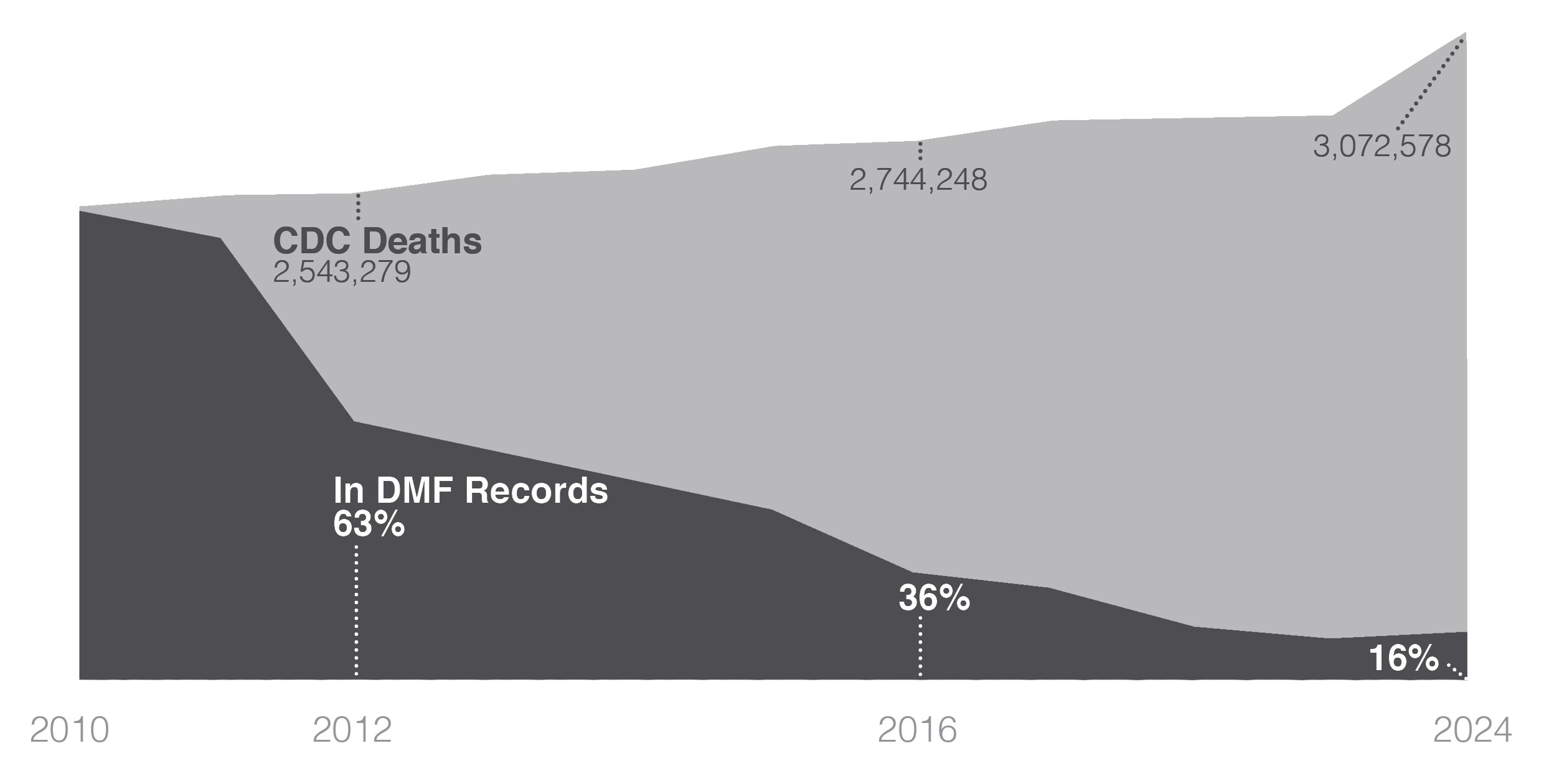 Since 2011, the Social Security Administration has dramatically decreased the amount of data available within the Death Master File (DMF). Today, the DMF identifies only 16% of deaths, making it an unreliable source for any insurance company, healthcare institution, pension, or third-party administrator. CertiDeath® fills that gap. Using proprietary algorithms, integrated databases and human expertise, we provide a true death audit solution with validated results.